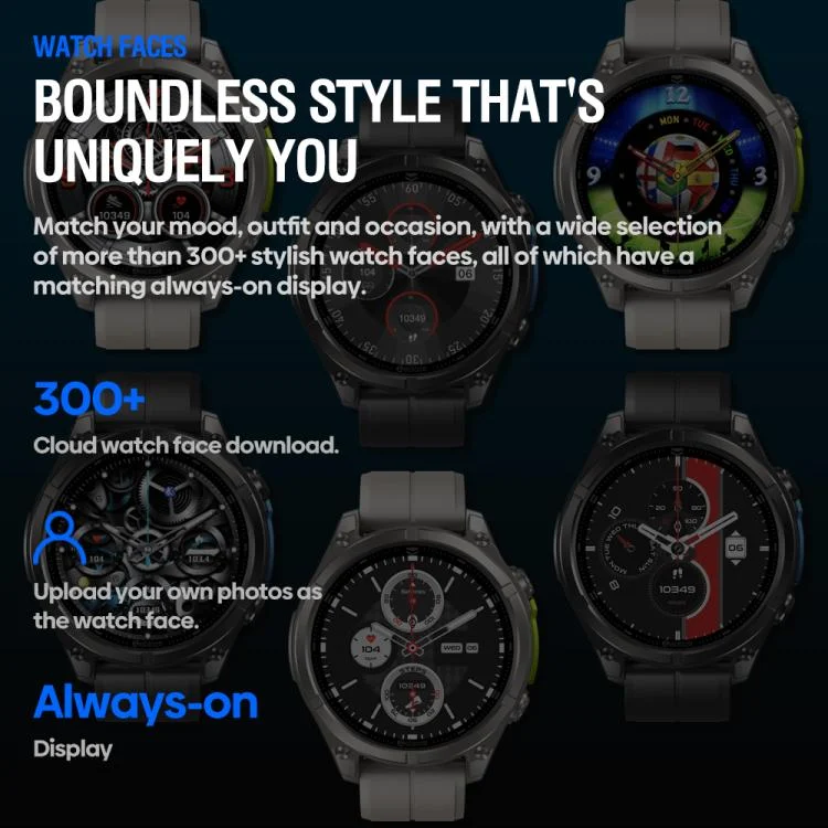 1. Screen: 1.43 inch Ultra HD AMOLED, 466×466 pixels, 326 PPI, up to 1000 nit Brightness,Sapphire Glass Lens