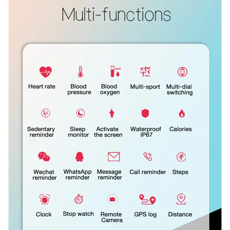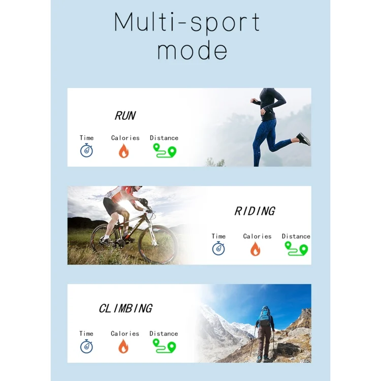 7. Function: exercise record (pedometer, calorie burn, mileage), sleep monitoring, support call reminder, SMS, WeChat, QQ push, alarm clock reminder, etc.