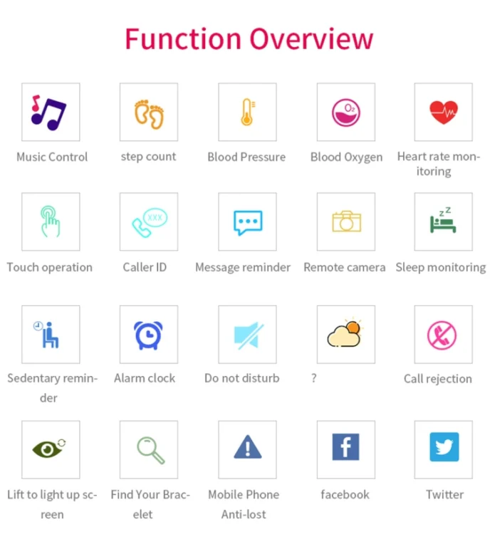 3. Display screen: 0.96inch IPS, wake bracelet up: raise and turn over the wrist or touch and slide screen.
