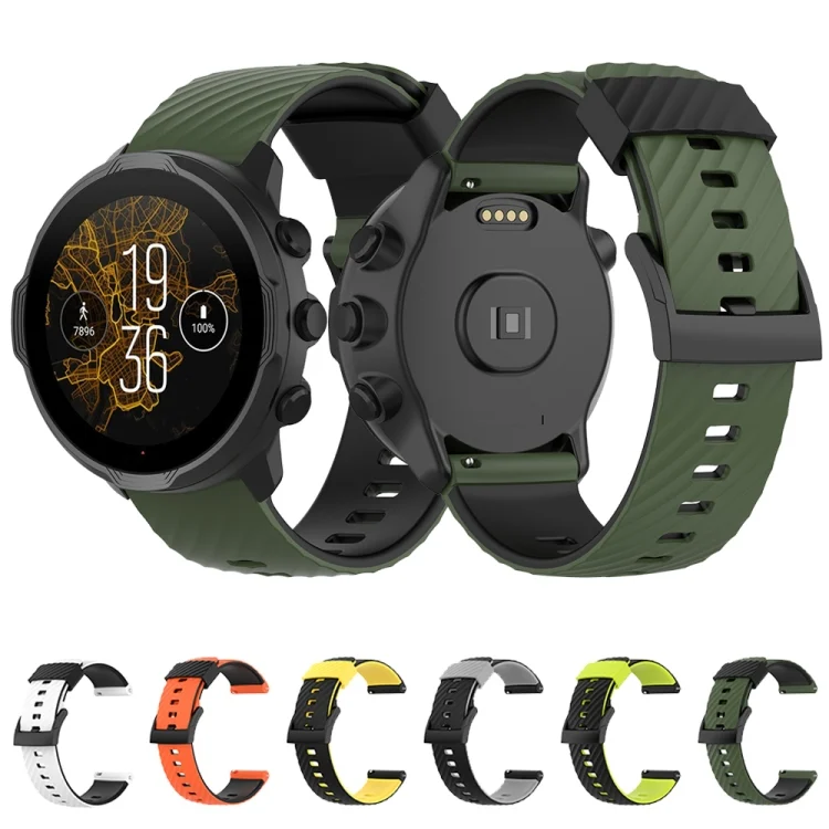 For Suunto 7 24mm Two-color Silicone Replacement Strap Watchband