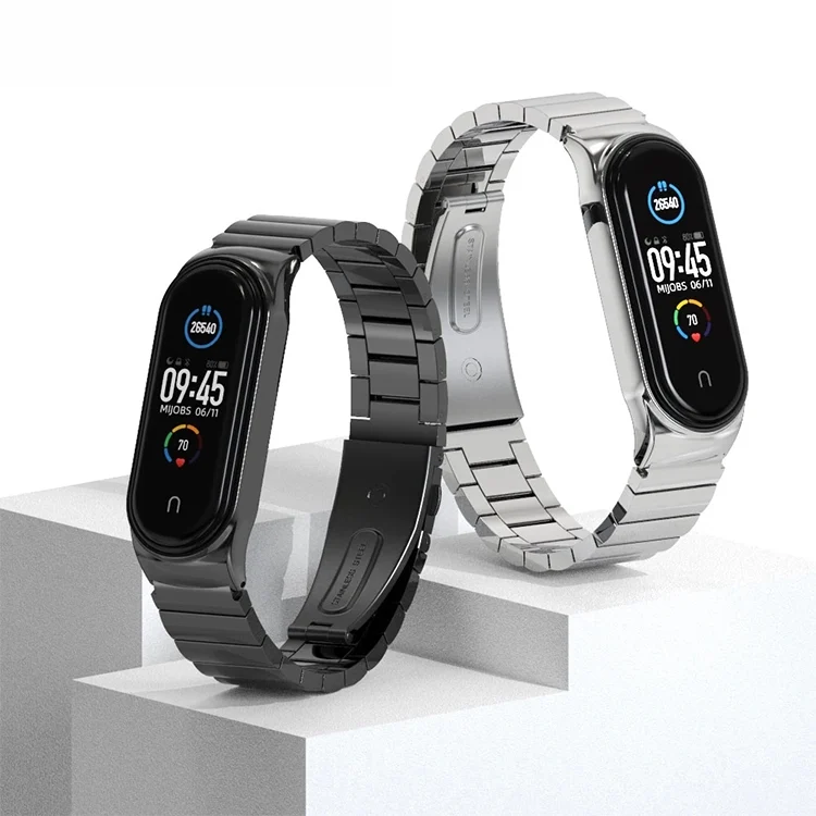 For Mi Band 6 / 5 / 4 / 3 Metal CS Bamboo Joint Stainless Steel Replacement Watchband