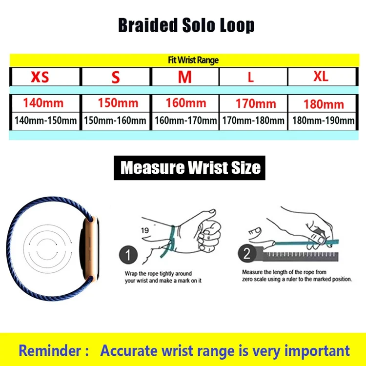 6. Suitable for wrist circumference: XS: 140-150mm; S: 150-160mm; M: 160-170mm; L: 170-180mm; XL: 180-190mm