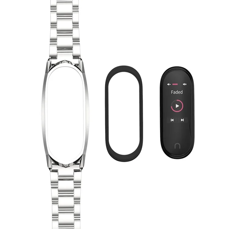 For Xiaomi Mi Band 6 / 5 / 4 / 3 Mijobs Three Beads Metal GT Stainless Steel Replacement Watchband