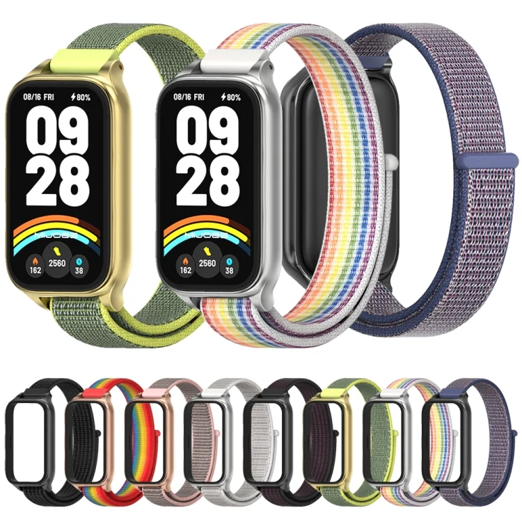 For Xiaomi Mi Band 8 ENKAY Hat-Prince 2 in 1 Set Full Coverage Screen Protector + Elastic Braided Nylon Watch Band