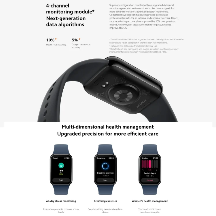 3. Intelligent health monitoring: Can monitor heart rate / blood oxygen saturati pressure / breathing training / scientific sleep / womens health management.