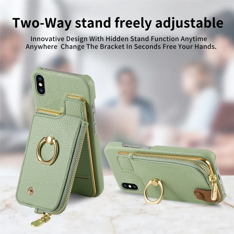 Litchi Leather Oil Edge Ring Zipper Wallet Back Phone Case