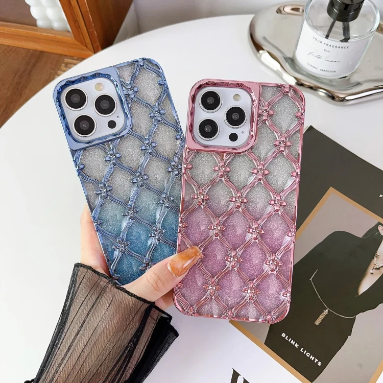 Star Flower Electroplated TPU Phone Case with Gradient Glitter Paper