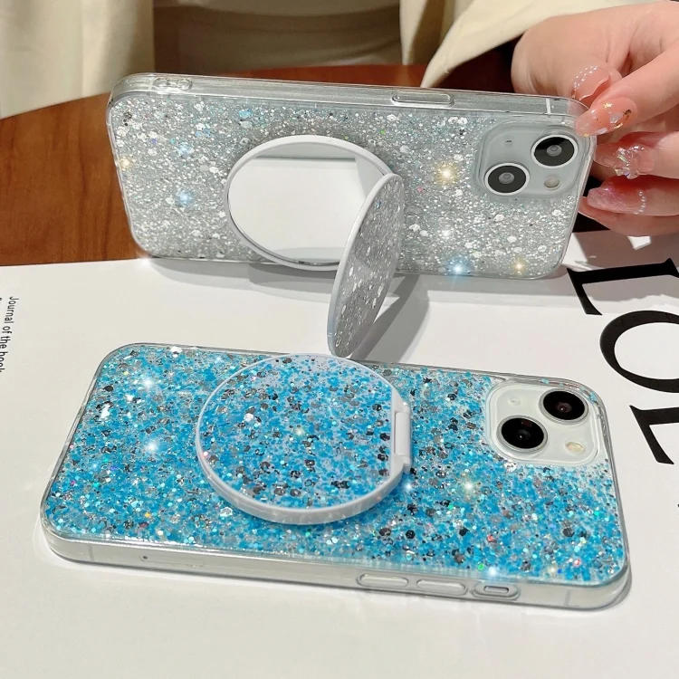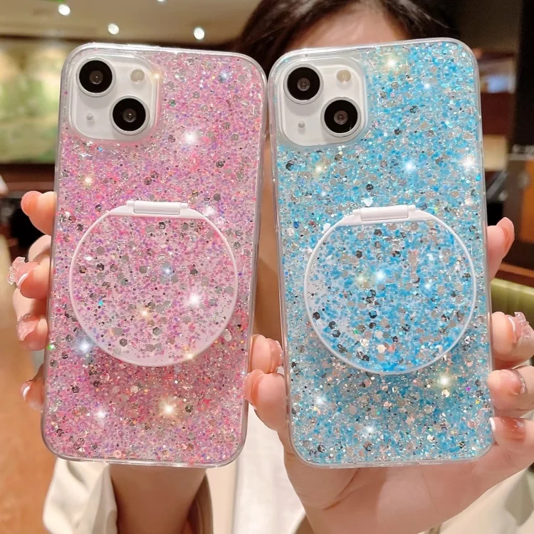 Starry Sequin Round Mirror Stand Epoxy TPU Phone Case