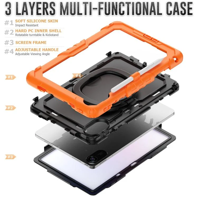 D Type Silicone Hybrid PC Tablet Case with Handle Holder, For Xiaomi Redmi Pad 2
