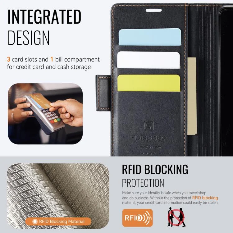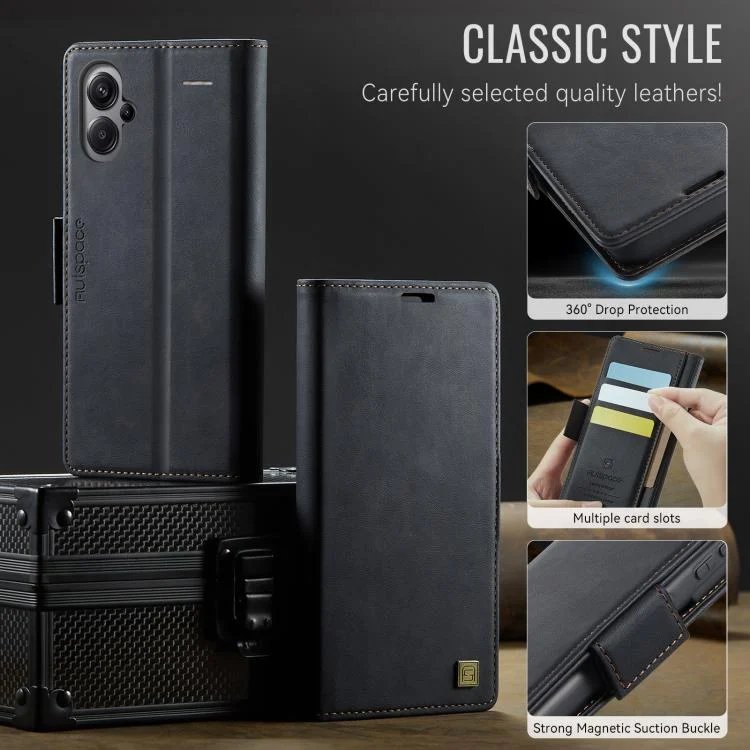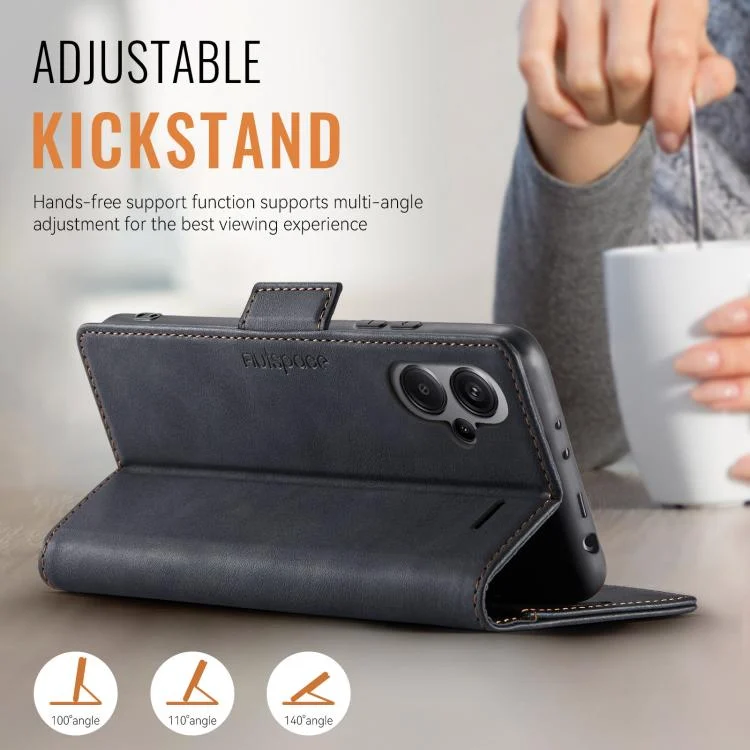 AutSpace A11 Side Buckle MagSafe Magnetic RFID Phone Leather Case, For Redmi Note 13 Pro+ 5G, For Redmi 11A / 12C
