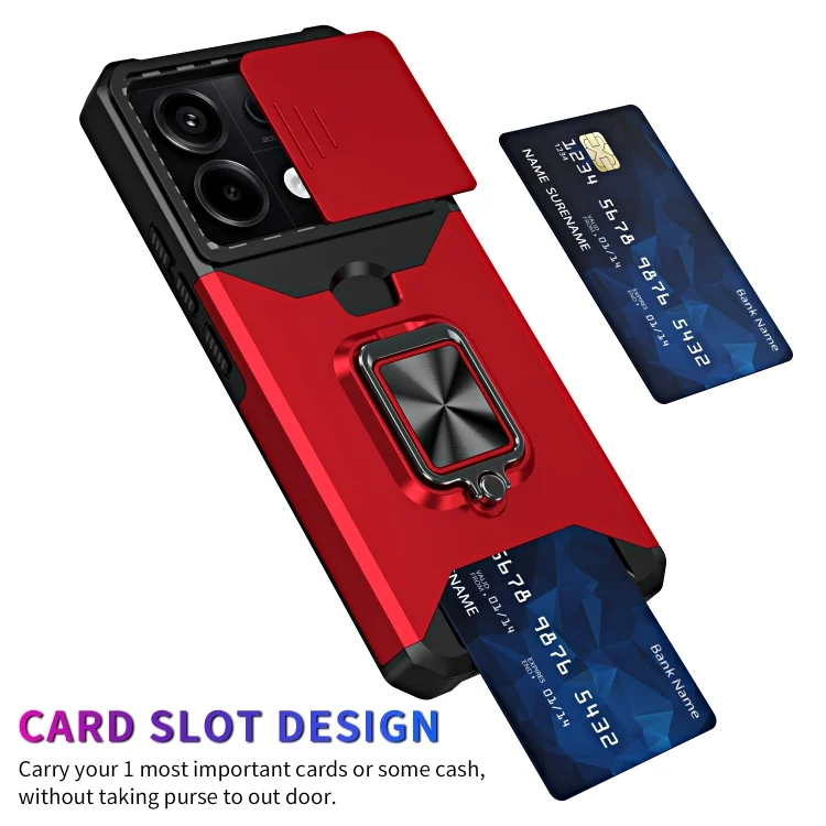 Camera Shield Card Slot PC+TPU Phone Case, For Redmi Note 14 Pro 5G / 14 Pro+ 5G, For Redmi Note 14 4G 163mm, For Redmi Note 13 4G
