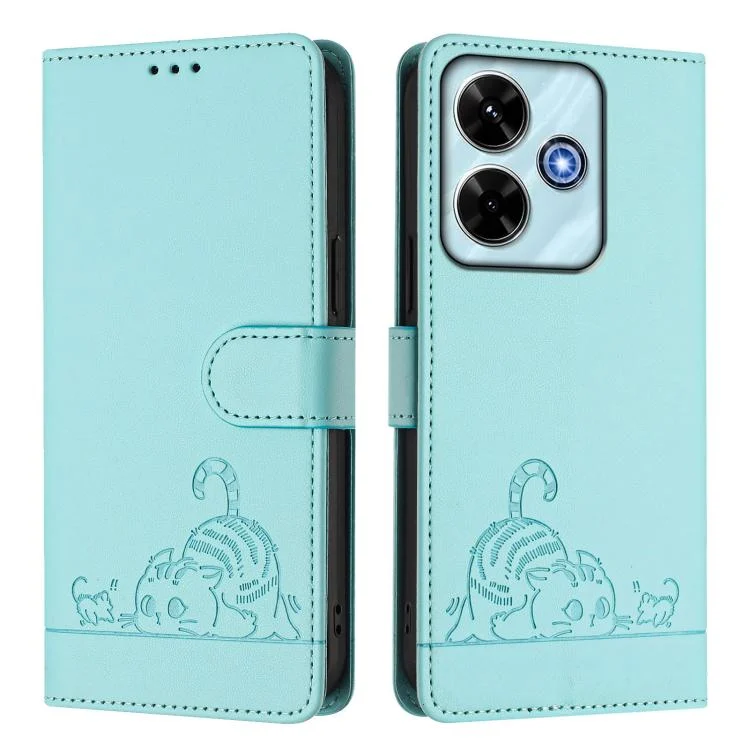 Cat Rat Embossed Pattern RFID Leather Phone Case with Lanyard, For Redmi 13x 4G / 13 4G Global, For Redmi A5 4G 171.7mm / Poco C71, For Redmi K80 / K80 Pro