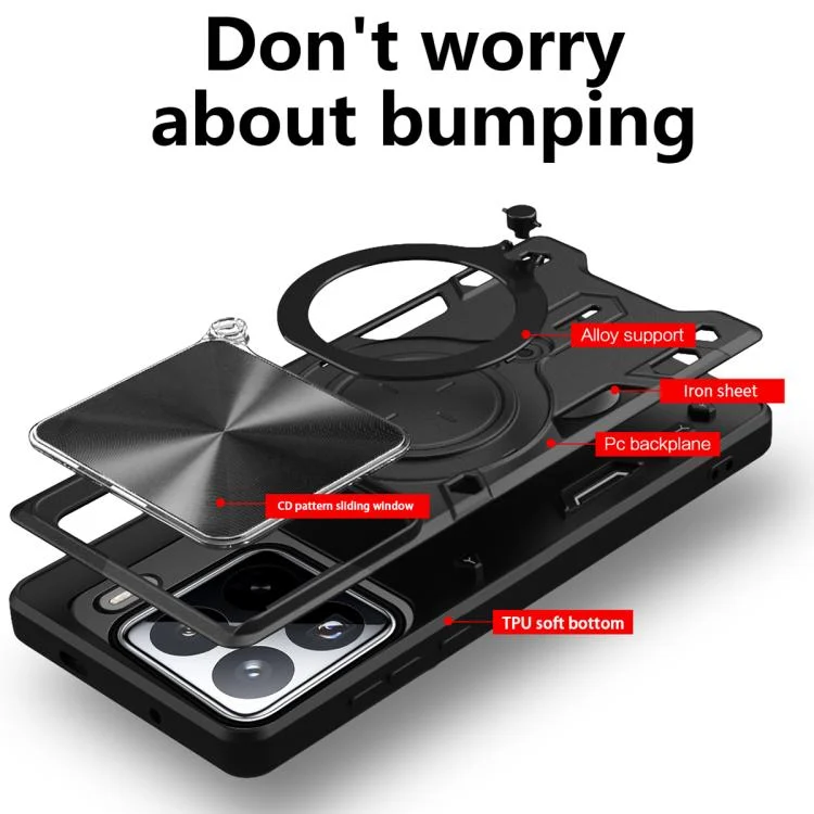 CD Texture Sliding Camshield Magnetic Holder Phone Case, For Xiaomi 15, For Xiaomi 14T Pro 5G, For Xiaomi 14T 5G