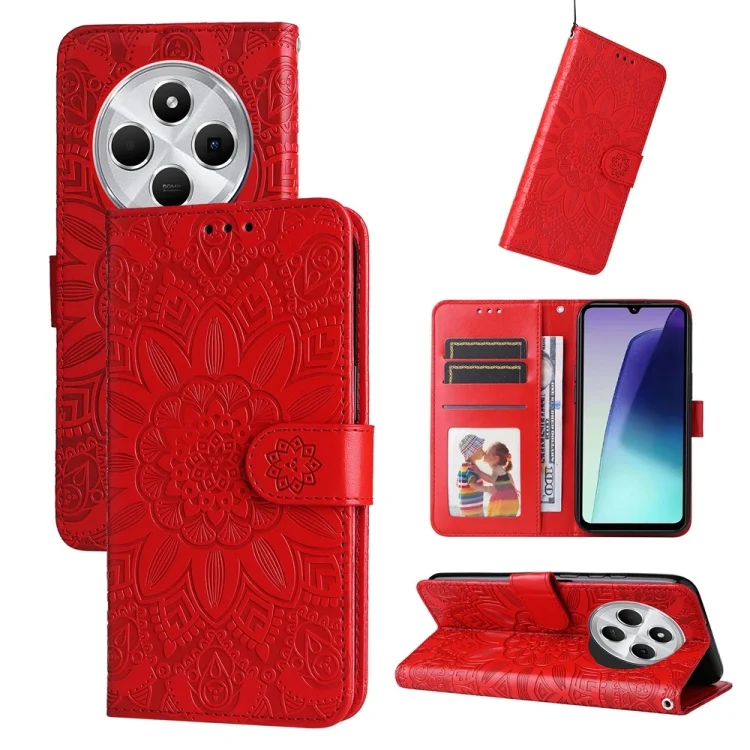 Embossed Sunflower Leather Phone Case, For Redmi 14C 4G, For Redmi K70 Ultra, For Redmi 13 4G / Redmi Note 13R