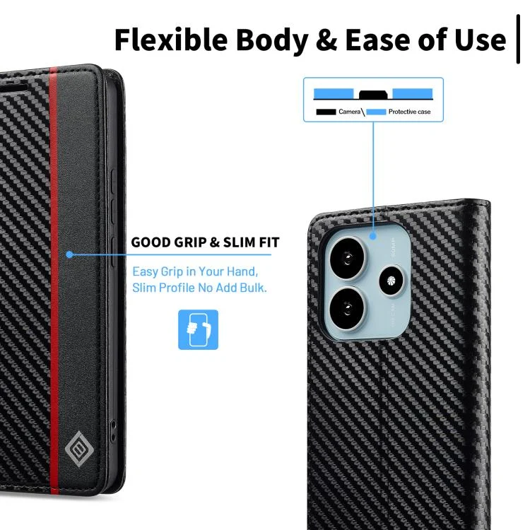 LC.IMEEKE Carbon Fiber Leather Phone Case, For Redmi Note 14 4G EU 164.84mm, For Redmi Note 14 Pro 4G, For Redmi A4 5G / 14C 4G, For Redmi Note 14 5G Global