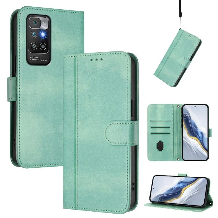 Line Splicing Buckle Retro Leather Phone Case, For Redmi Note 11S 5G / Xiaomi Poco M4 Pro 5G, For Redmi 10A / 9C
