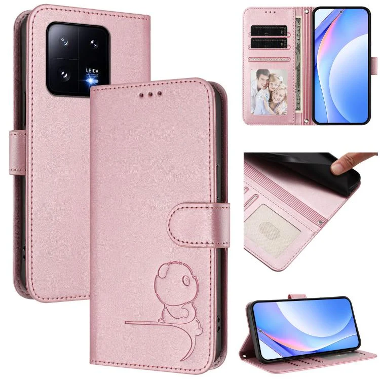 Litter Panda Embossing RFID Leather Phone Case with Lanyard, For Xiaomi 13 Pro, For Xiaomi 13, For Xiaomi 12T / 12T Pro