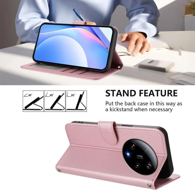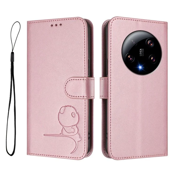 Litter Panda Embossing RFID Leather Phone Case with Lanyard, For Xiaomi 14 Pro, For Xiaomi 14, For Xiaomi 13T / 13T Pro