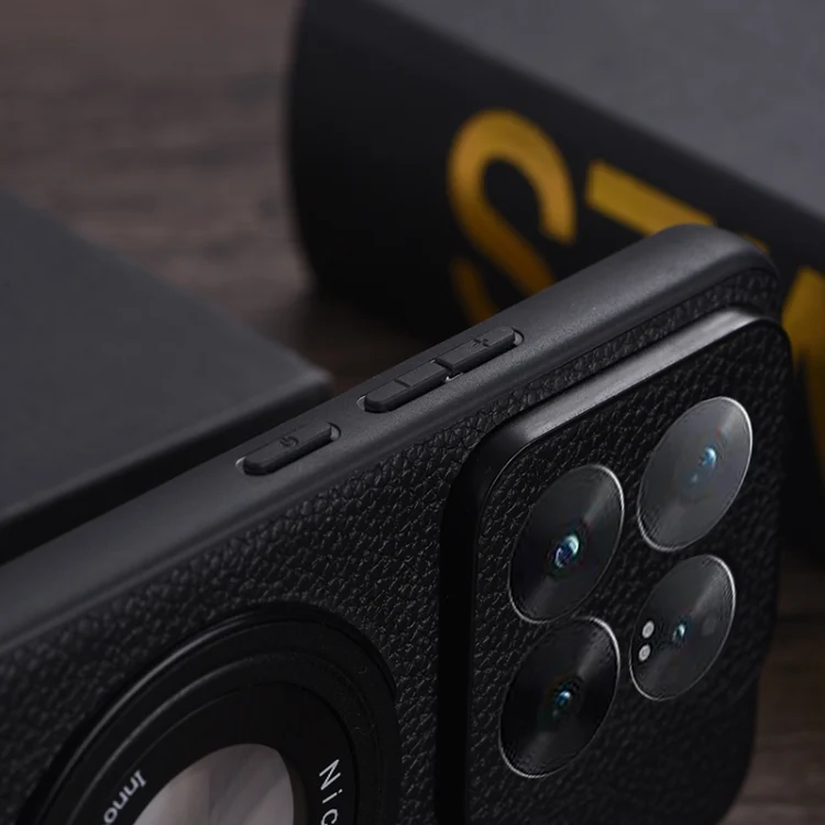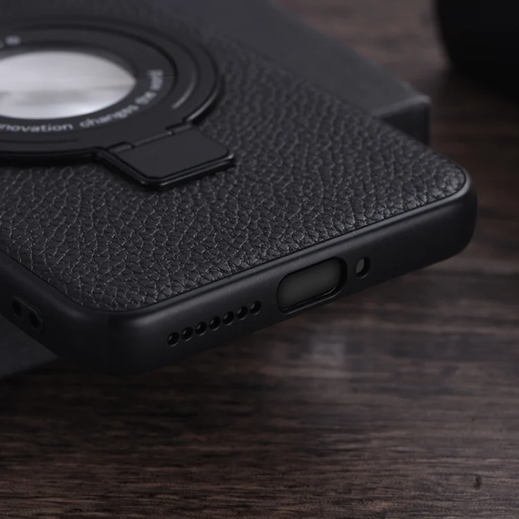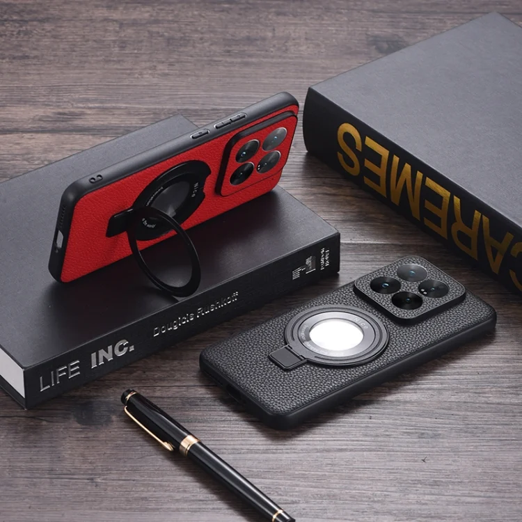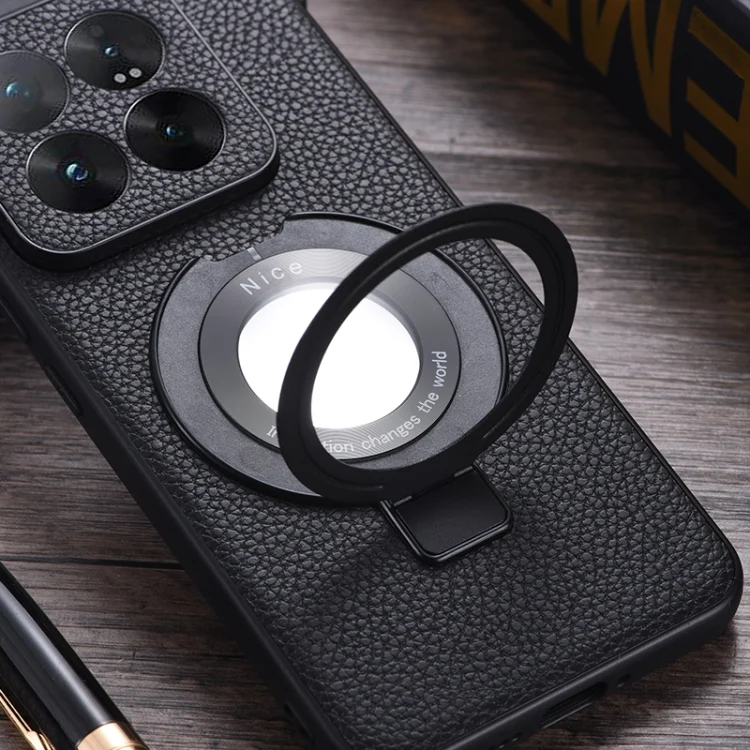 Magnifier Holder Litchi Texture PU Phone Case, For Xiaomi 14 Pro