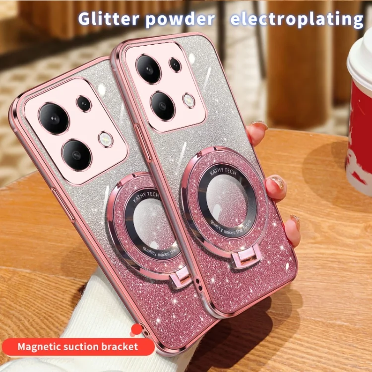 Plated Gradient Glitter Round Holder TPU Phone Case, For Redmi Note 13 4G, For Redmi Note 13 5G, For Redmi 13C 4G, For Redmi Note 13 Pro+