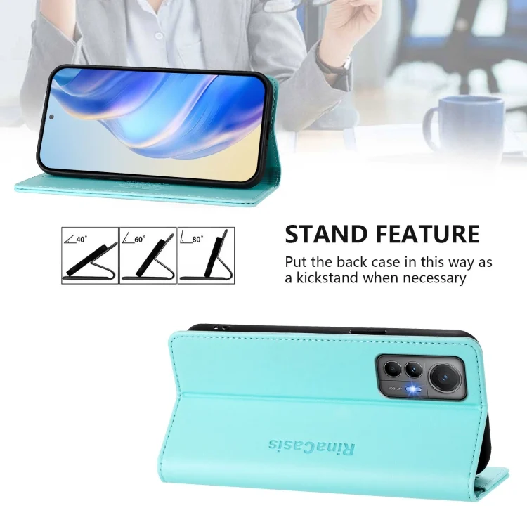 RC01 Dual-Folded Magnetic Suction RFID Leather Phone Case, For Xiaomi 12 Lite, For Xiaomi Poco C40