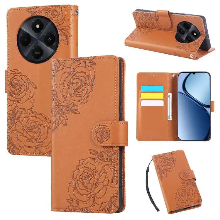 Rose Flower Embossed 3-Card Slots Leather Phone Case, For Redmi 14C 4G, For Redmi Note 13 Pro 4G, For Redmi Note 13 5G, For Redmi Note 13 4G Global