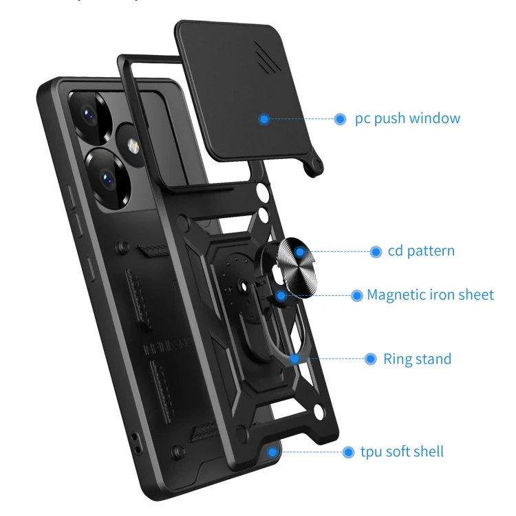Sliding Camera Cover Design TPU+PC Phone Case, For Xiaomi Poco F6, For Xiaomi Poco F6 Pro