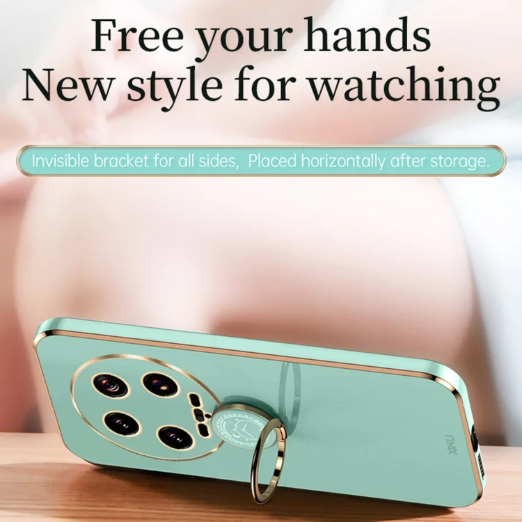 XINLI Straight Edge 6D Electroplate TPU Phone Case with Ring Holder, For Xiaomi 14 Ultra 5G