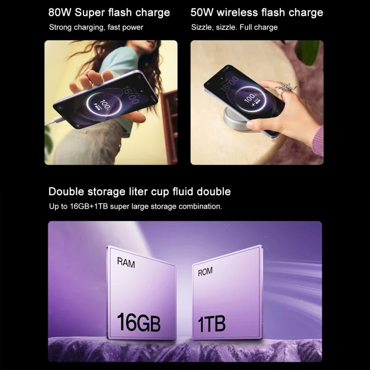 2. Fast Charge: 80W Super Flash Charge. Compatible with 67W, 65W, 50W, 45W, 33W, 13.5W PD. 50W wireless charge