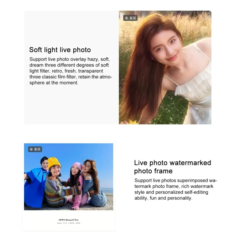 3. Function Support: Rear camera: Photos, videos, portraits, night scenes, professional, panoramic, movies, slow motion, multi-scene videos, time-lapse photography, cute photos, AI ID photos, high pixels, underwater cameras, documents; Front camera: Photos, videos, portraits, night scenes, panoramas, multi-scene recording, time-lapse photography, cute shots, AI ID photos, beauty selfies, screen fill light, high pixel