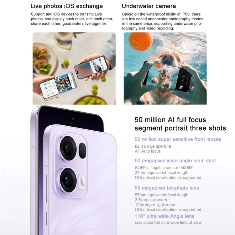 1. Rear: 50MP (F1.8, 24mm, OIS) + 8MP (F2.2, 116 degrees, 15mm) + 50MP (F2.8, 80mm, OIS)