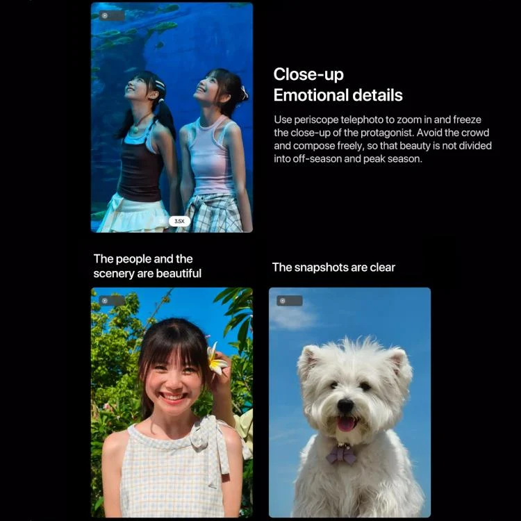 1. Rear: 50MP wide (f/1.8, 26mm, 5P lens, AF) + 8MP ultra-wide (f/2.2, 15mm, 5P lens, AF, 116 degree) + 50MP telephoto (f/2.8, 80mm, 4P lens, AF, OIS)