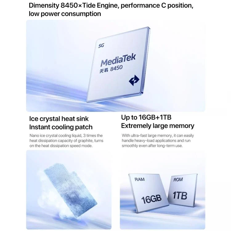 1. CPU: Dimensity 8450, octa-core, 3.35GHz