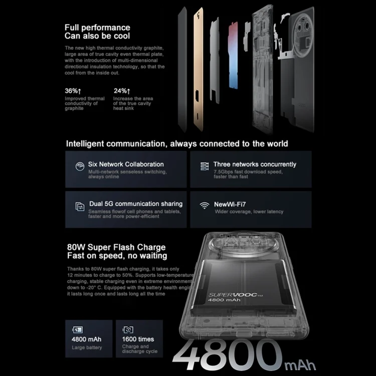 6. Built-in 4800mAh battery, supports 80W SUPERVOOC flash charging