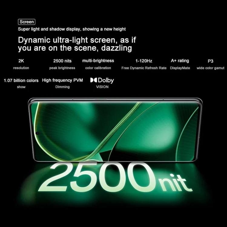 1. 6.82 inch 3168×1440 QHD+ AMOLED LTPO screen, 120Hz refresh rate, 93.5% screen ratio, 510 PPI pixel density.
