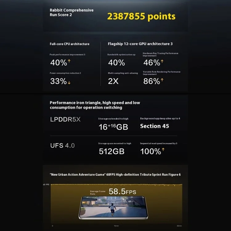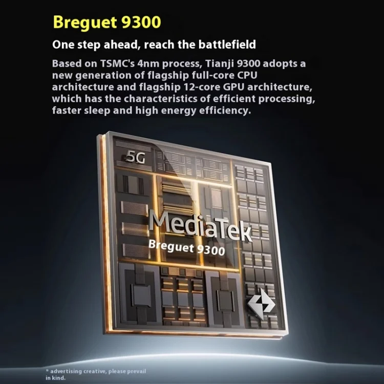 1. CPU: Dimensity 9300+, 64-bit octa-core, 4nm, 3.4GHz x 1 + 2.85GHz x 3 + 2.0GHz x 4