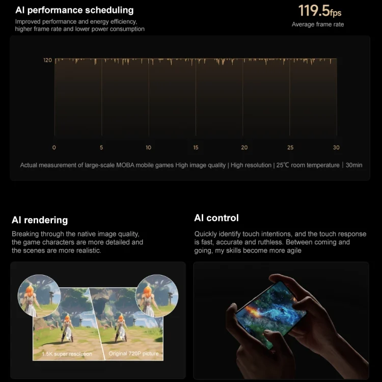 7. Features: 1920Hz high frequency PWM dimming, 12bit color depth, DCI-P3 color gamut, professional primary color screen, multiple screens of the same color, sunlight screen, classic eye protection, paper eye protection, rhythmic eye protection, HDR10+, Dolby Vision, under-screen optical fingerprint , dark light unlocking, wet hand touch, super dynamic display