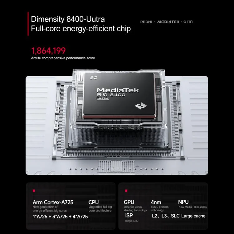 1. CPU: Dimensity 8400-Ultra 4nm Octa Core 3.25 GHz