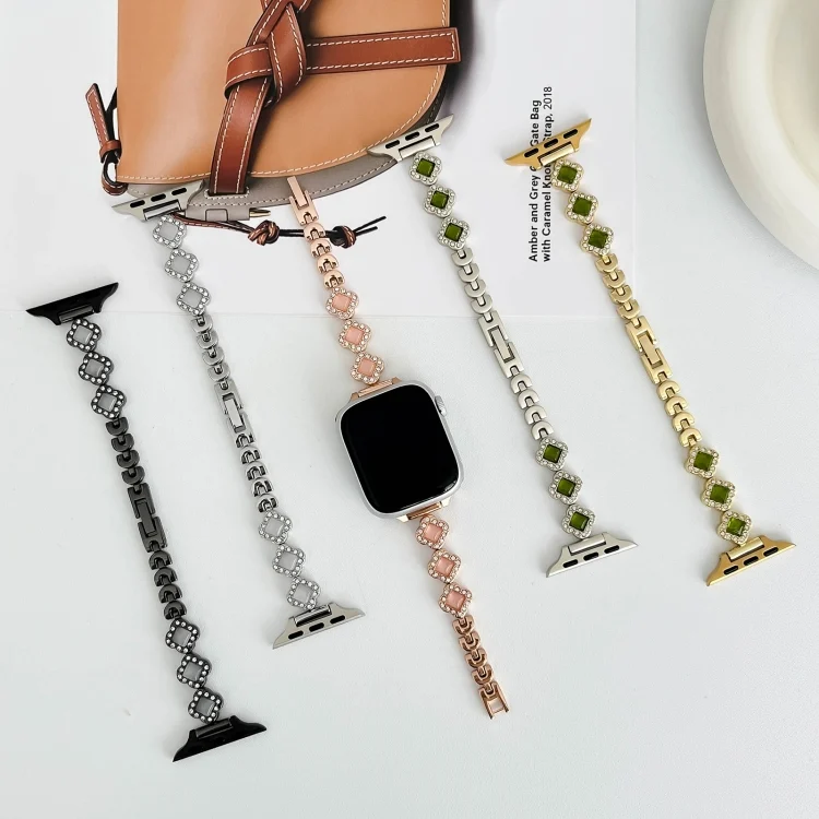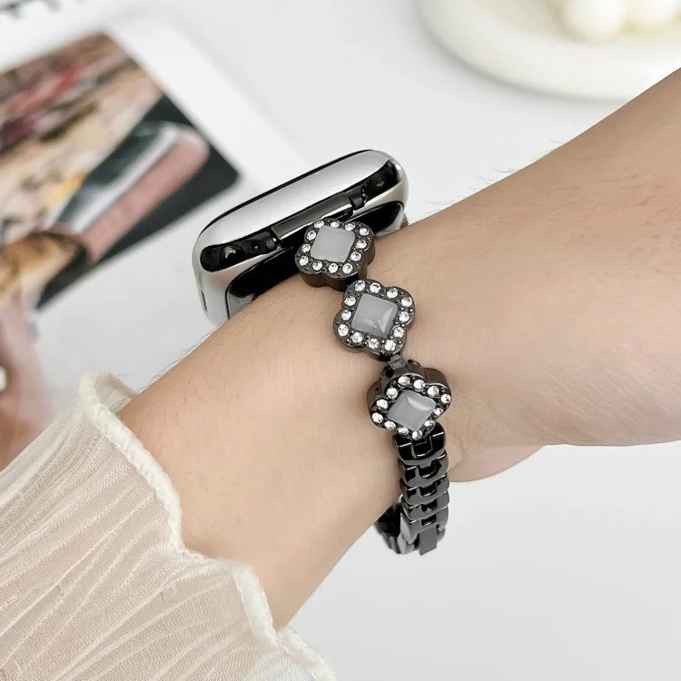 Diamond Four-leaf Clover Metal Chain Watch Band, For Apple Watch Series 3 38mm, For Apple Watch Series 3 42mm, For Apple Watch Series 2 42mm, For Apple Watch Series 2 38mm