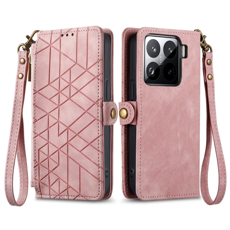 Geometric Zipper Wallet Side Buckle Leather Phone Case, For Xiaomi 15, For Xiaomi Redmi Note 14 5G, For Xiaomi Redmi Note 14 Pro+ 5G