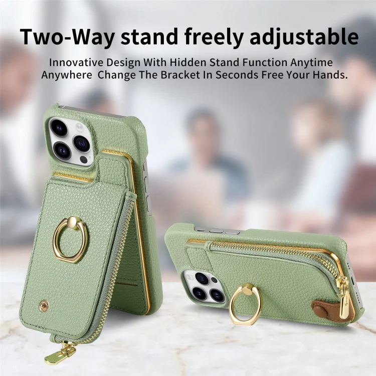 Litchi Leather Oil Edge Ring Zipper Wallet Back Phone Case