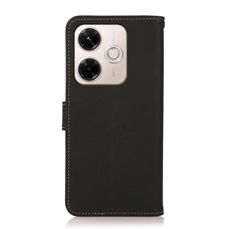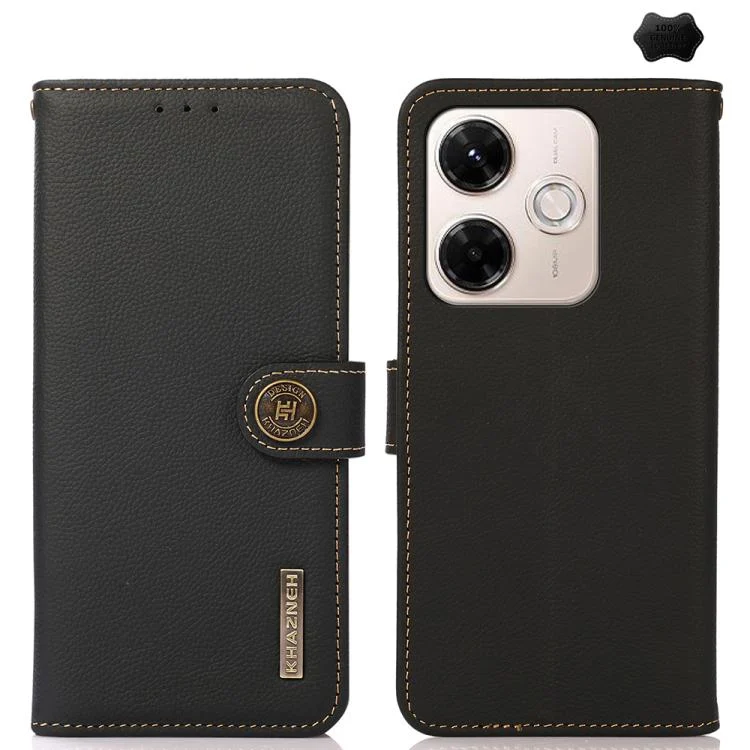 KHAZNEH Custer Texture RFID Genuine Leather Phone Case, For Redmi 14C 4G, For Redmi 13 4G