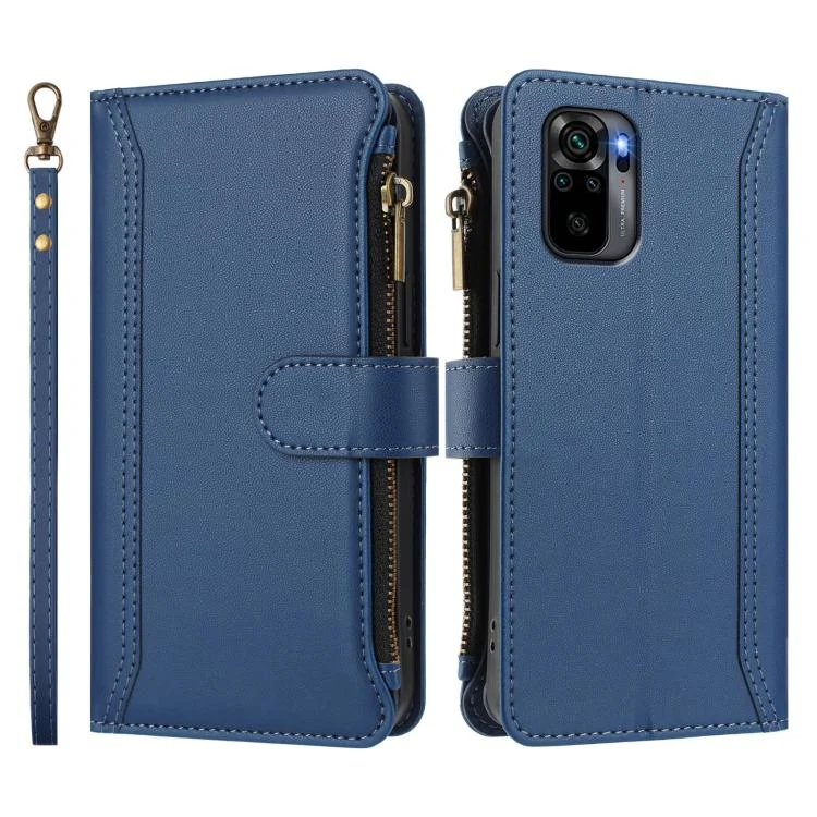 Magnetic Closure 9 Card Slots Zipper Leather Case with Hand Strap, For Redmi Note 10 4G / Note 10S / Poco M5s, For Redmi Note 11 Pro+ 5G EU / Poco X4 NFC, For Redmi Note 11S 5G / Poco M4 Pro 5G